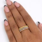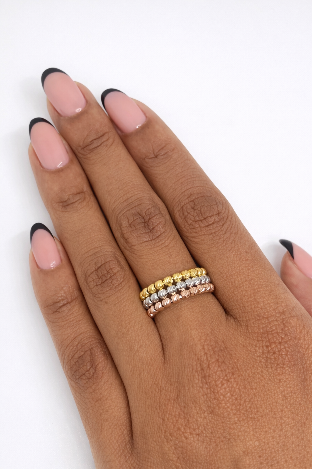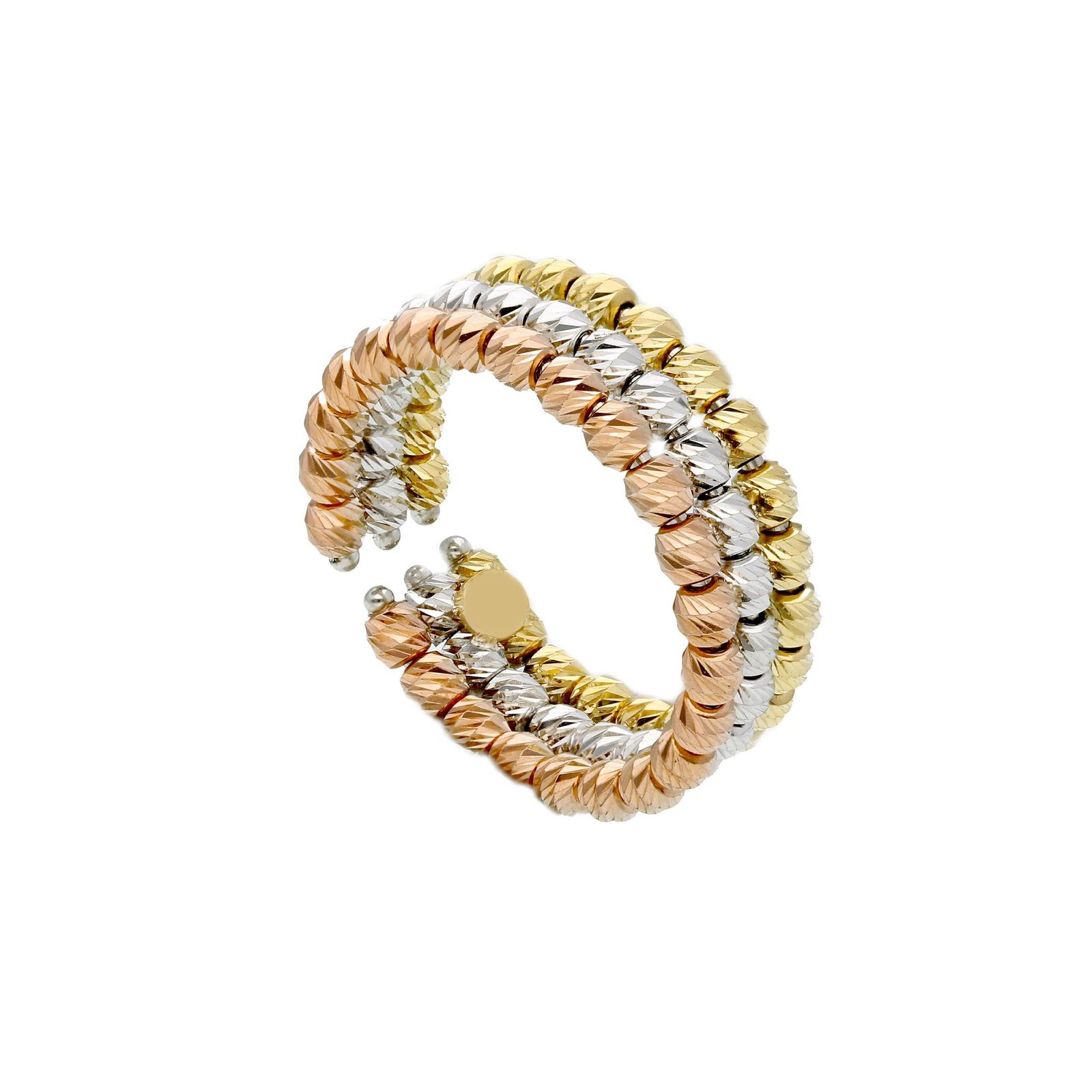 Three tone 3 line diamond cut ring