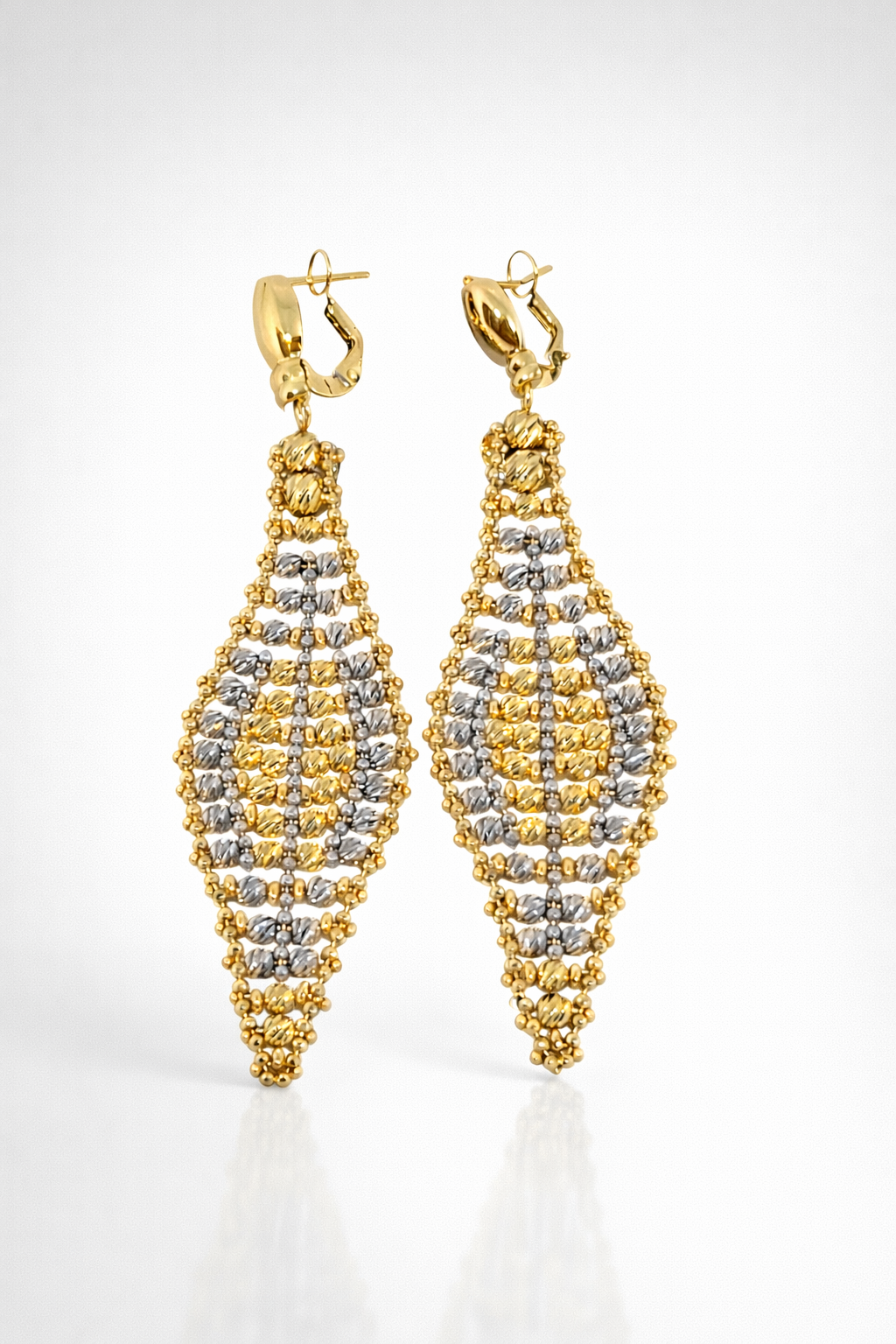 Two tone diamond cut drop earrings